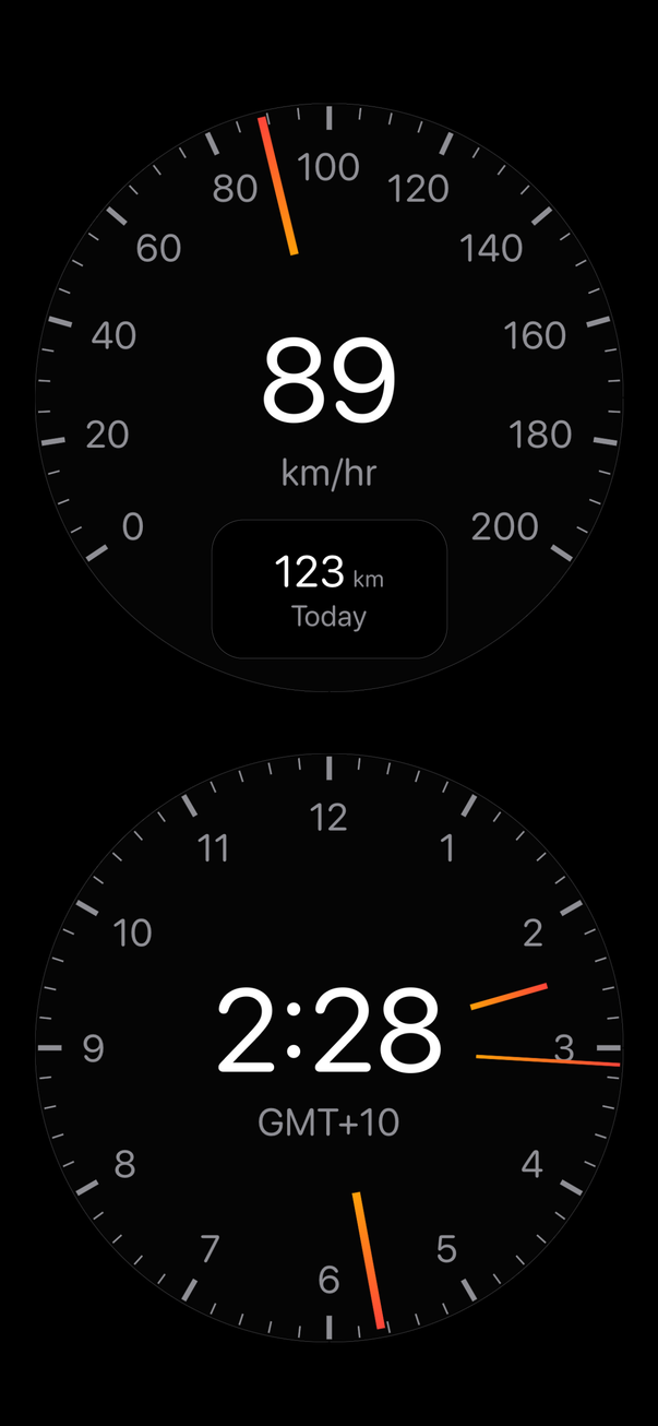 A GPS instrument panel for drivers and outdoor explorers. Features customizable dials for speed, altitude, barometric pressure, and compass. Multiple dashboards adapt to different activities, with automatic light and dark modes for optimal visibility.